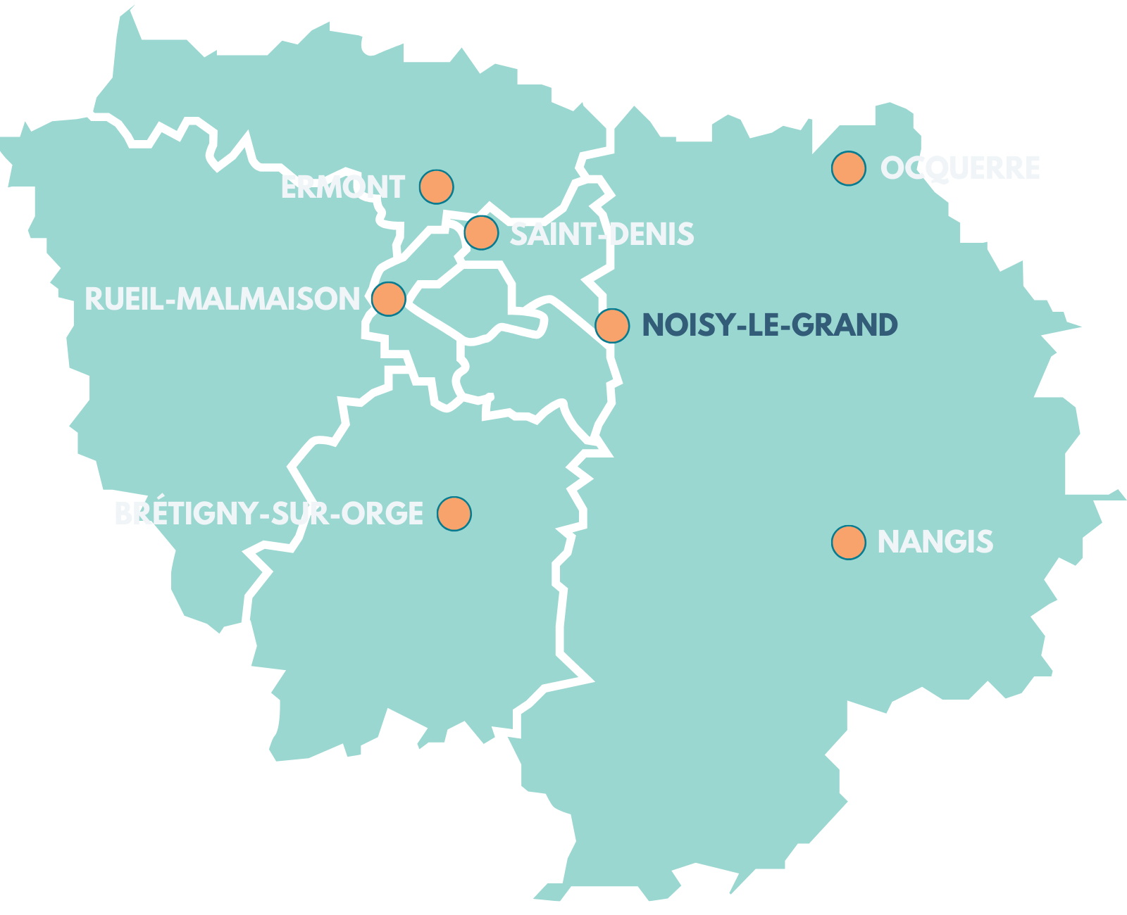• RER E : Direction Tournan / Arrêt Les Yvris – Noisy-le-Grand : Distance au centre de formation : 5 minutes en bus